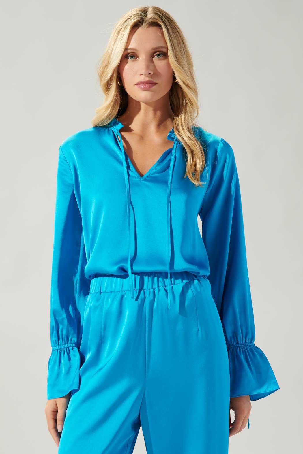 Sugarlips - Chateau Satin Ezra Split Neck Blouse